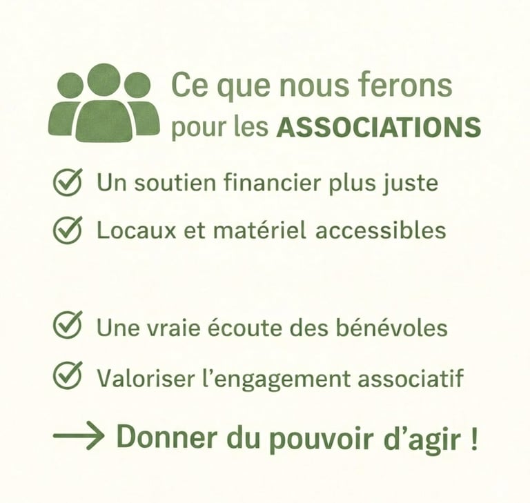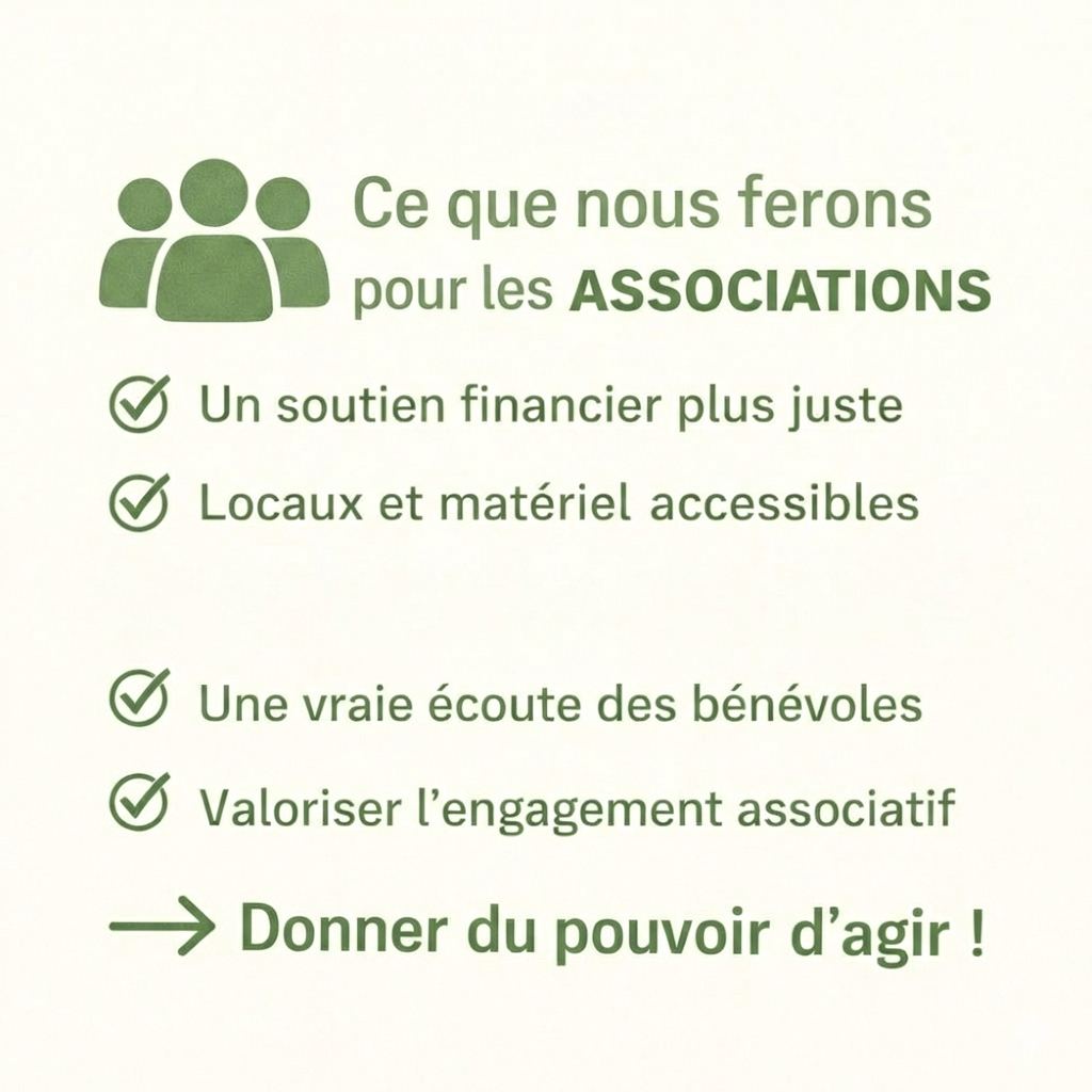 👉 Nous souhaitons donner aux associations les moyens d’agir et pour cela nous nous engageons à :