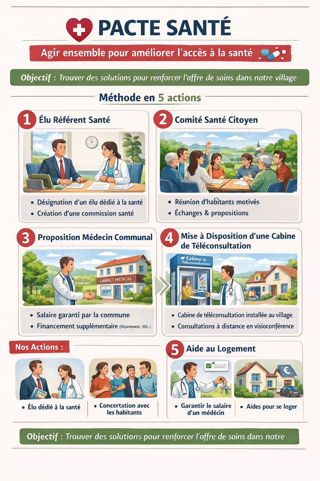 Notre objectif est simple : apporter des solutions pragmatiques, efficaces et durables pour garantir à chaque habitant un accès aux soins de qualité, ici, dans notre village.